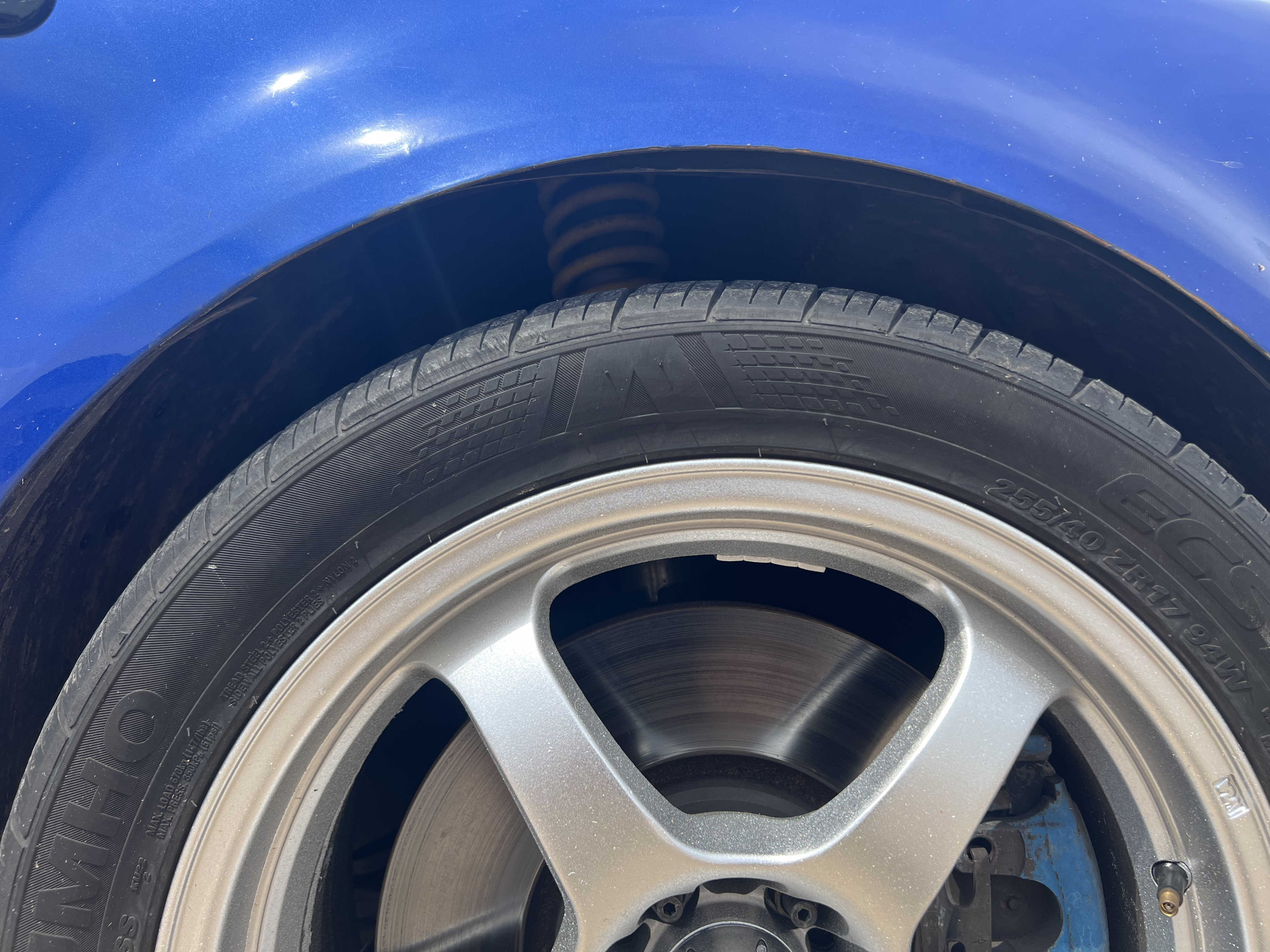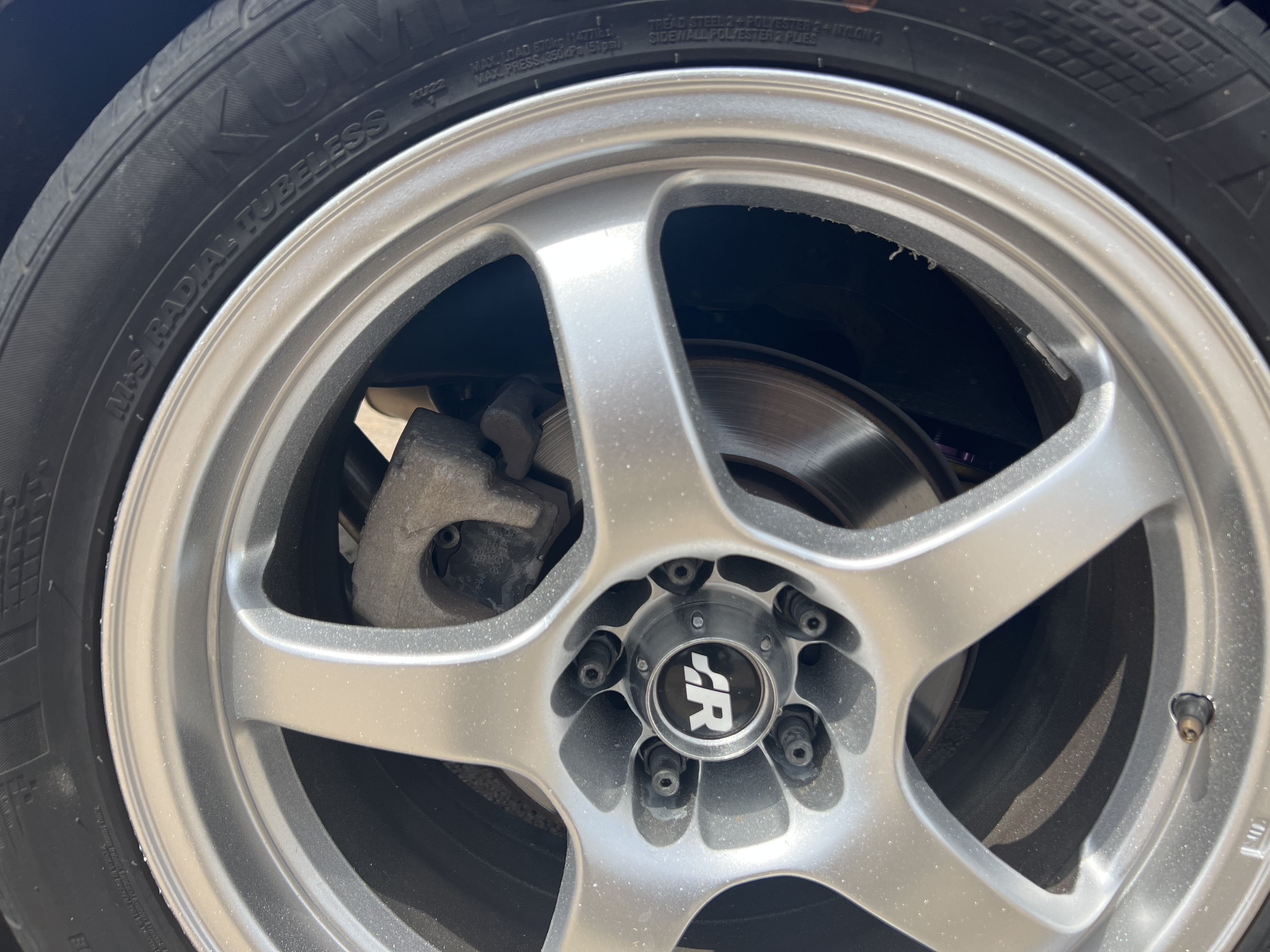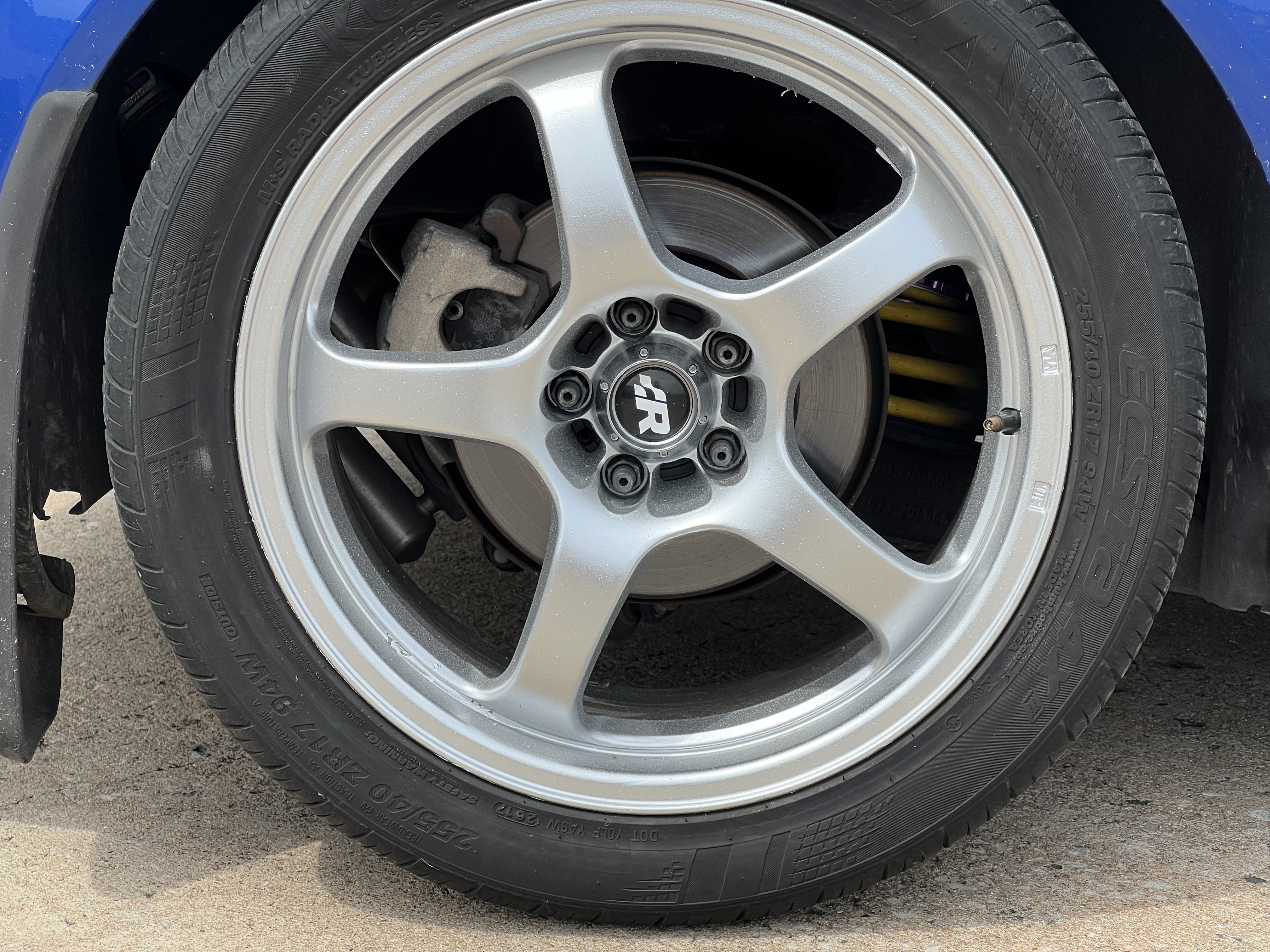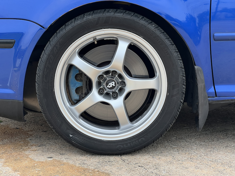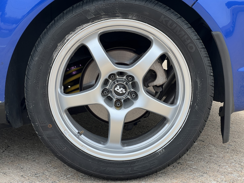 - 17x8 et35 Flik FTDs repainted silver (purchased in 2006! And used for autocross, rallycross, and track)