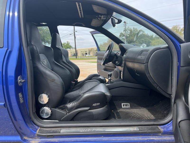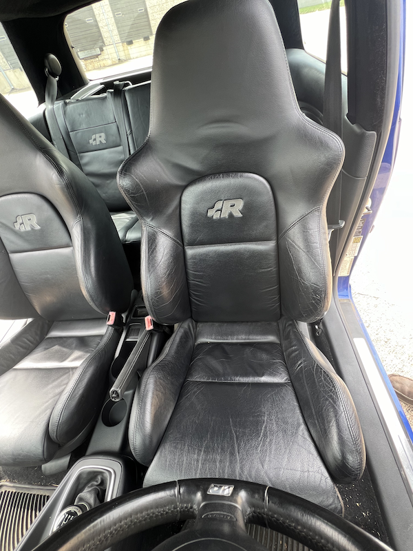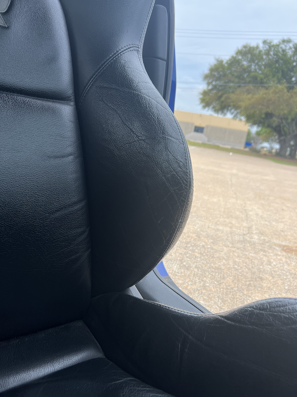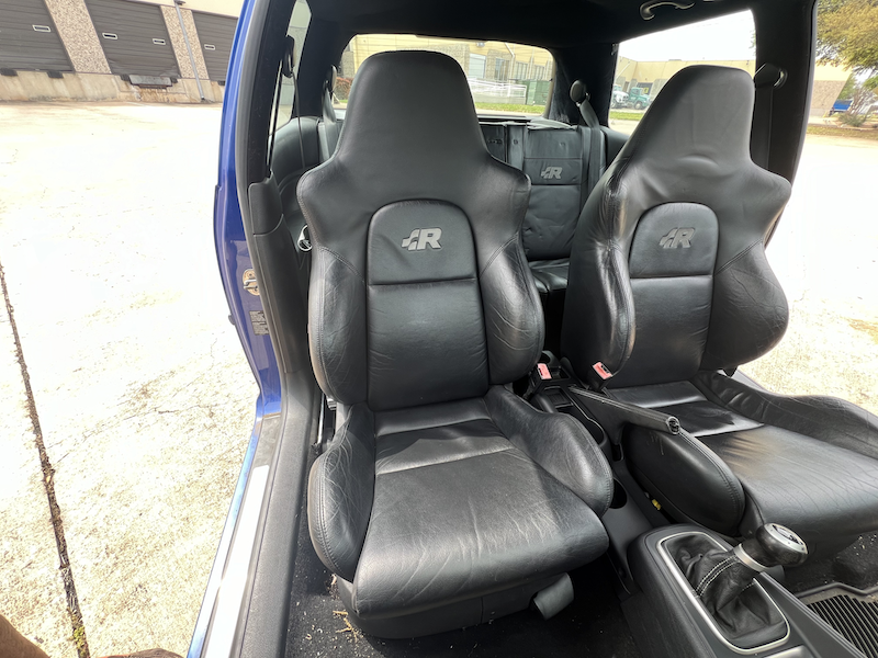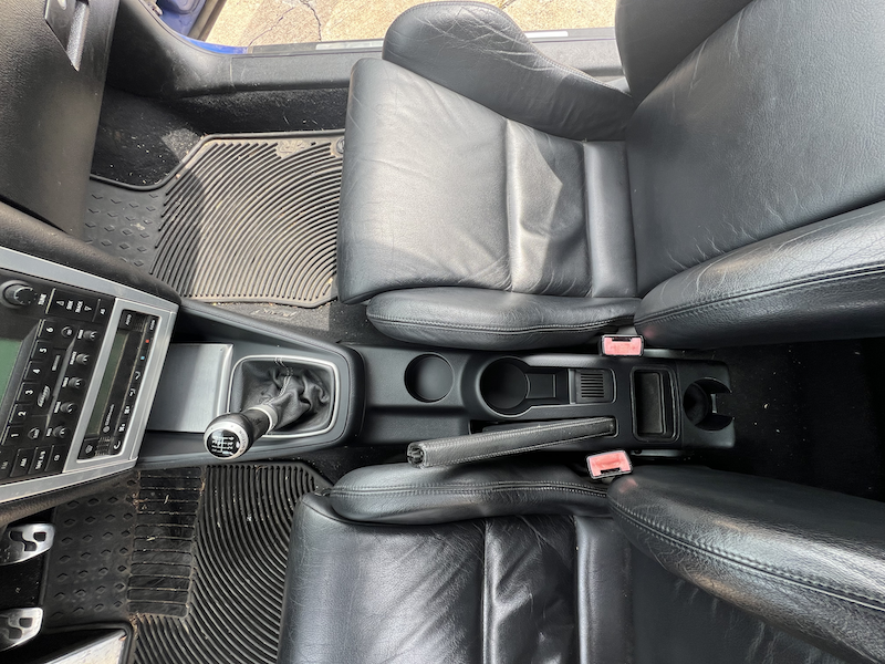 - Stock leather seats (no rear headrests), the fronts are in great shape in part because they were in storage for 8 years while the car had race seats.