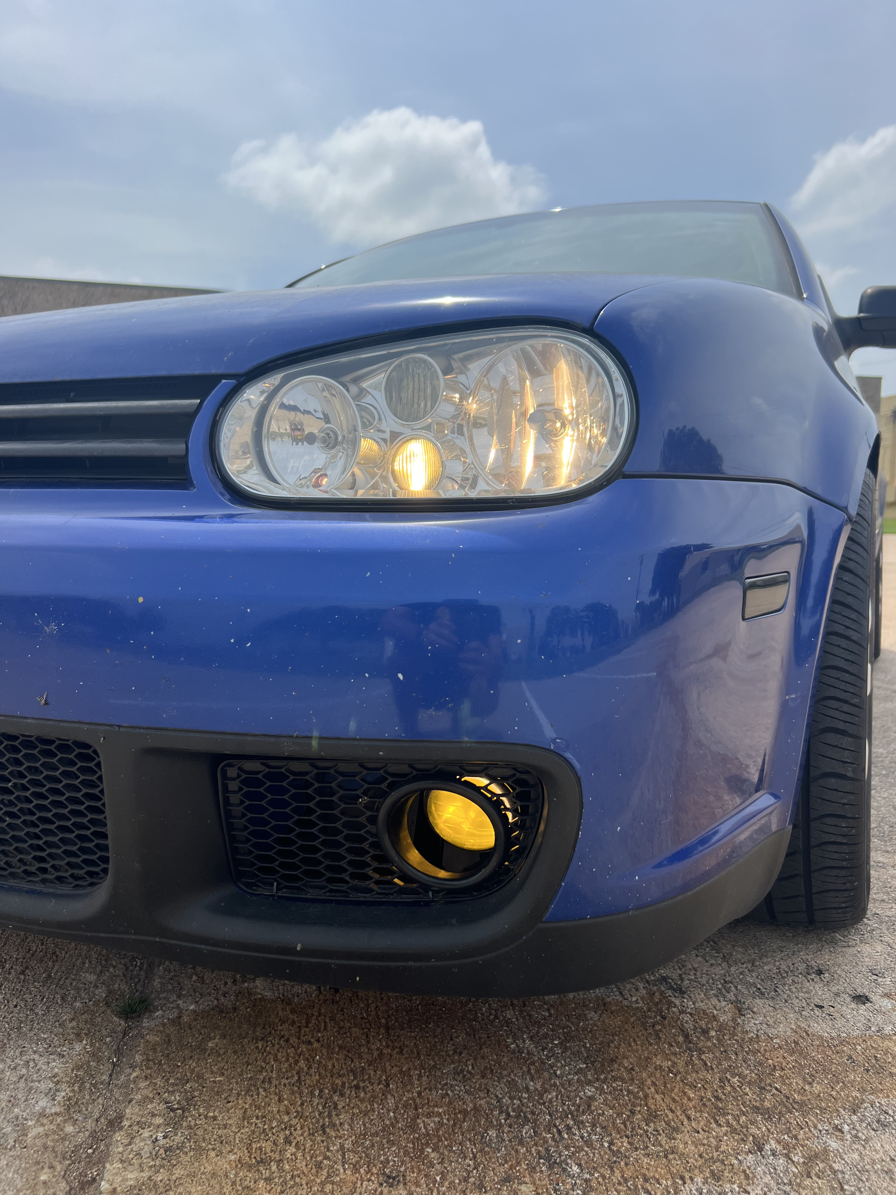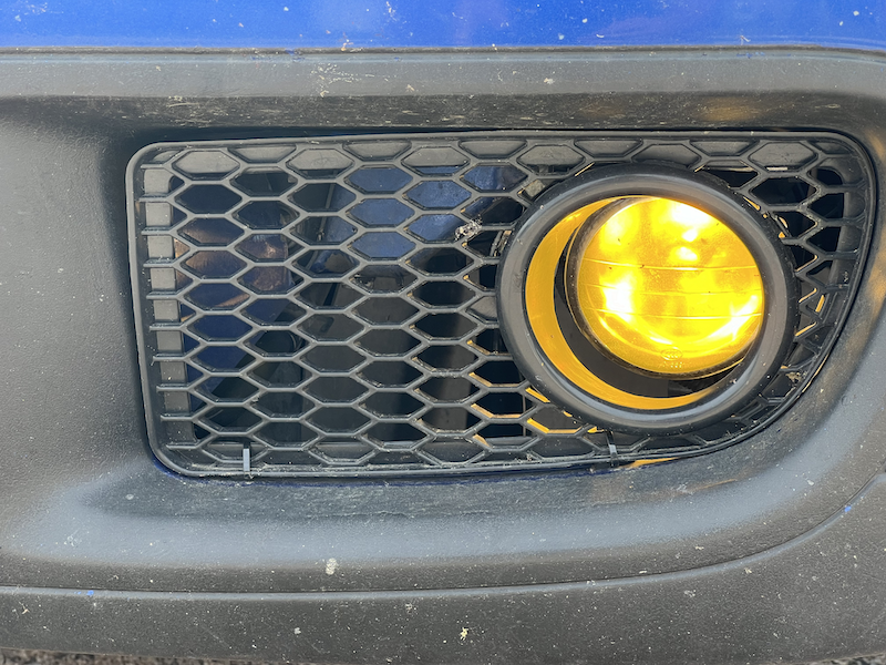 - Lower bumper fog lights with yellow film, wired to rear fog light position on the light switch and mounted to the metal bumper reinforcement